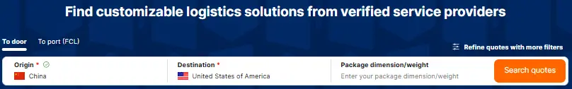 Alibaba fournit également une liste de transitaires. Il vous suffit de saisir vos données d'expédition et vous obtiendrez un grand nombre d'options, un peu comme si vous cherchiez des fournisseurs. Si vous souhaitez comparer les prix, vous pouvez leur demander des devis.