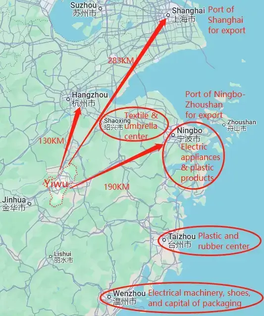 ييوو هي مدينة مركزية في مقاطعة تشجيانغ على ساحل بحر الصين الشرقي. جنبا إلى جنب مع دلتا نهر اليانغتسي و دلتا نهر اللؤلؤة السلاسل الصناعية، تضم ييوو حاليًا 2.1 مليون مصنع للإنتاج والتوريد.