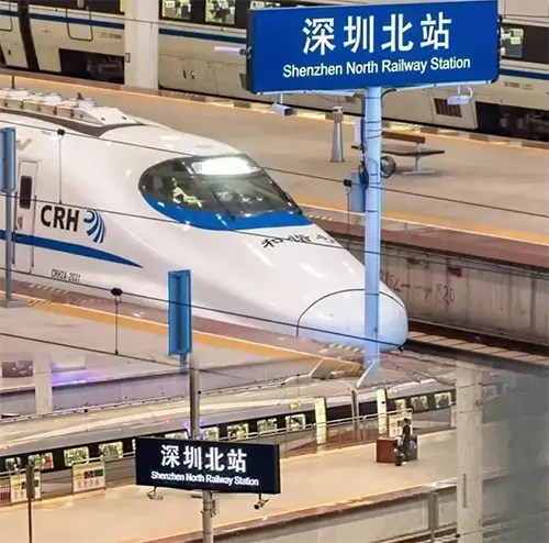 القطار فائق السرعة من محطة سكة حديد شنتشن الشمالية (深圳北) إلى ييوو.