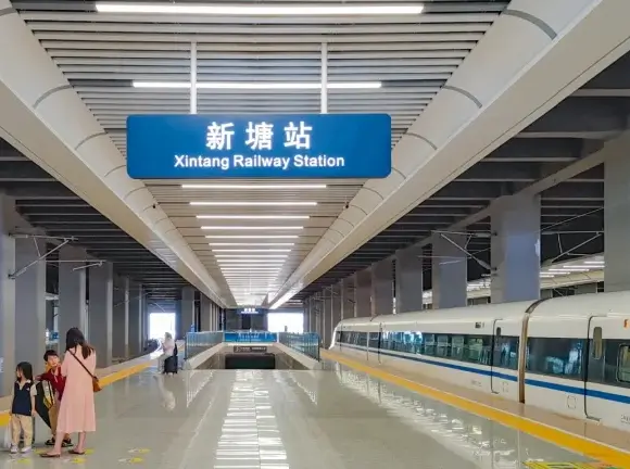 من محطة شينتانغ للسكك الحديدية (新 塘高铁站)
