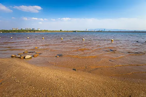 يقع بالقرب من شاطئ البحيرة وبجوار أكبر ملعب جولف في تشجيانغ، كما يتميز بشاطئ قريب، يعرفه السكان المحليون باعتزاز باسم "سانيا الصغيرة".