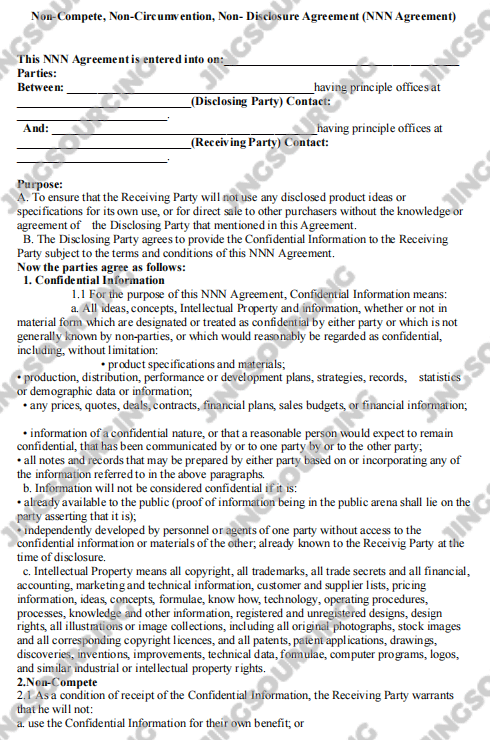 Here I use an example to show you how to sign an NNN agreement in China and matters needing attention.